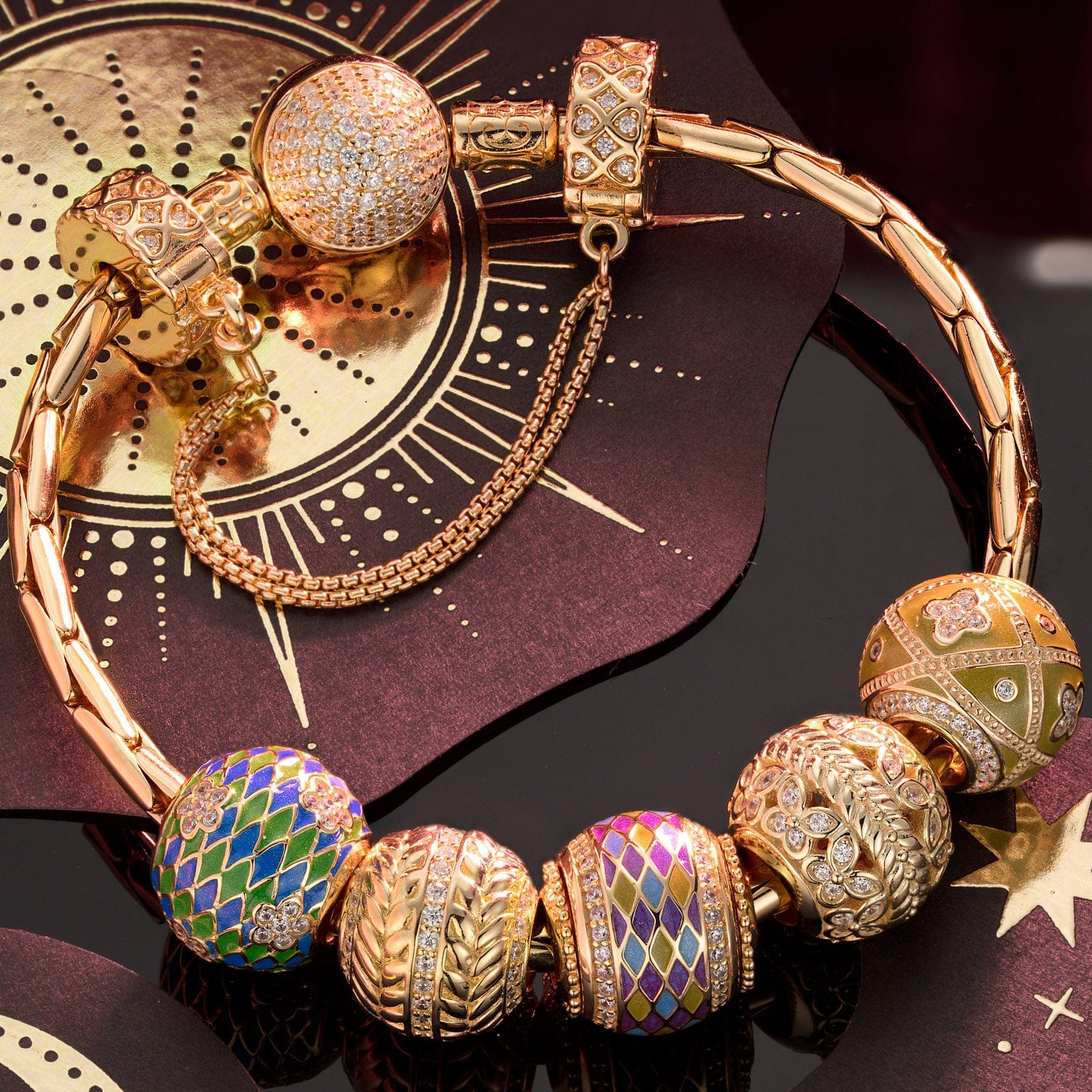 Design: Glamour Fortune Whirl collection, inspired by the ancient Tibetan prayer wheel, each charm is meticulously crafted with attention to detail, symbolizing the turning of the wheel of life and the luck and blessings it brings.