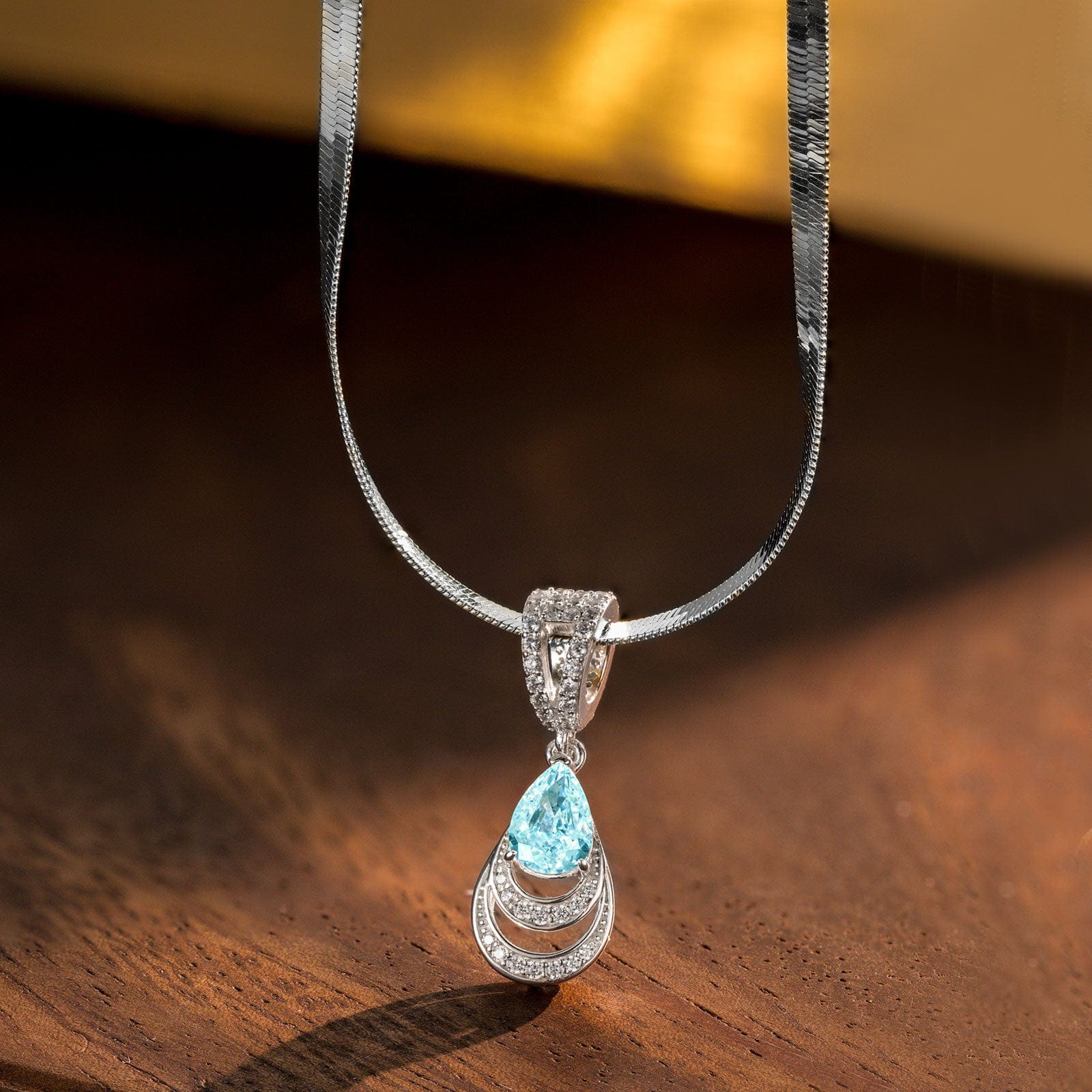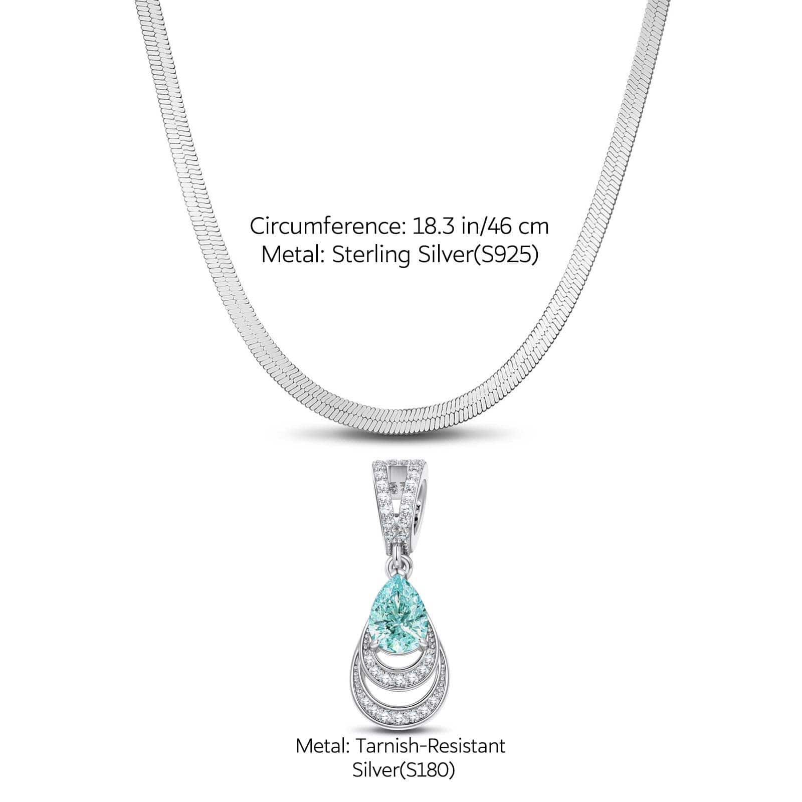 Sterling Silver Flat Snake Chain Mermaid's Tear Charms Necklace Set In White Gold Plated