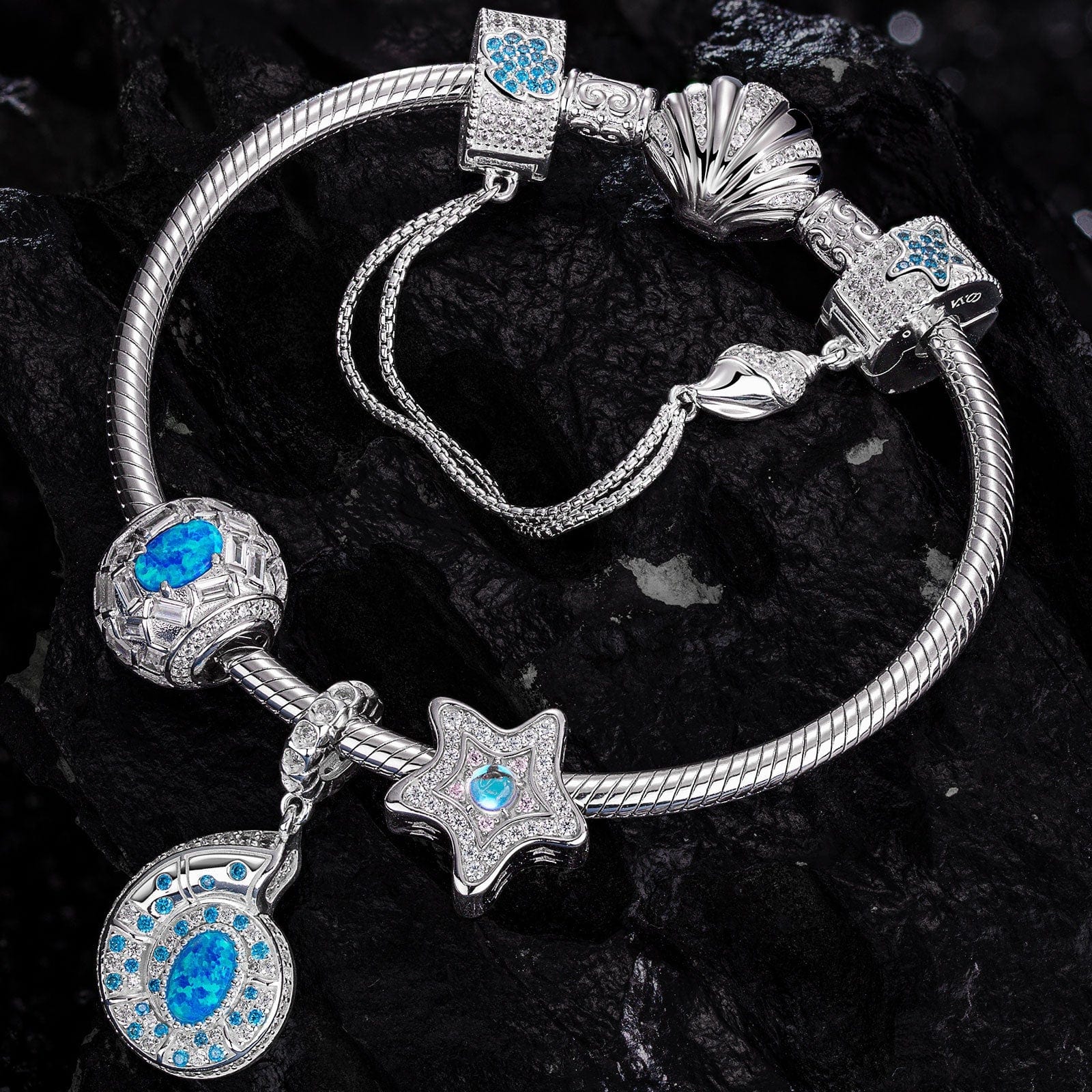 Sterling Silver Pastel Oceanic Dreams Charms Bracelet Set In White Gold Plated (Includes bracelet and all charms shown)