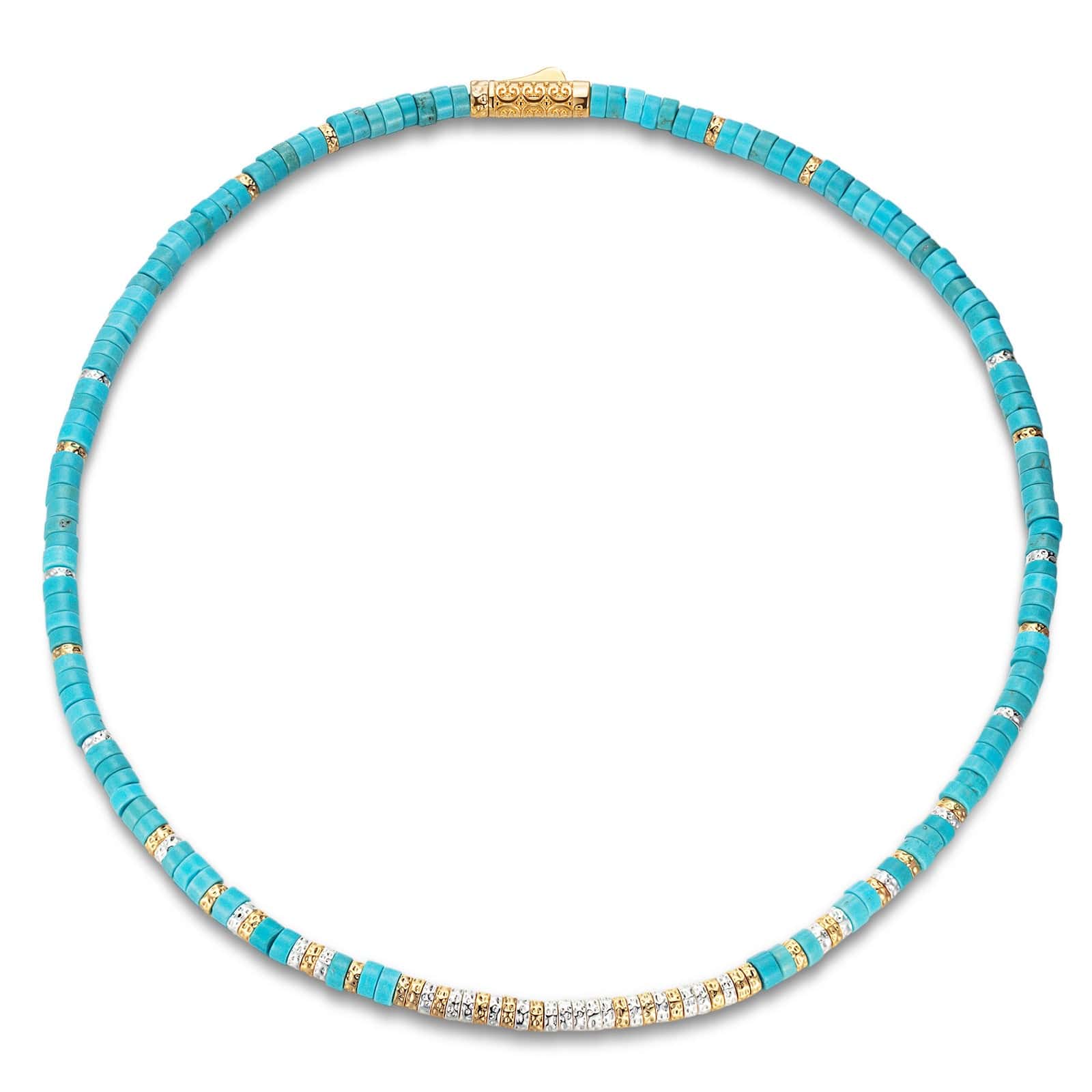 Boundless Loops Handcrafted Necklace in Natural Turquoise, crafted in Tarnish-Resistant Silver with Bi-Color Galaxy Gold Plating