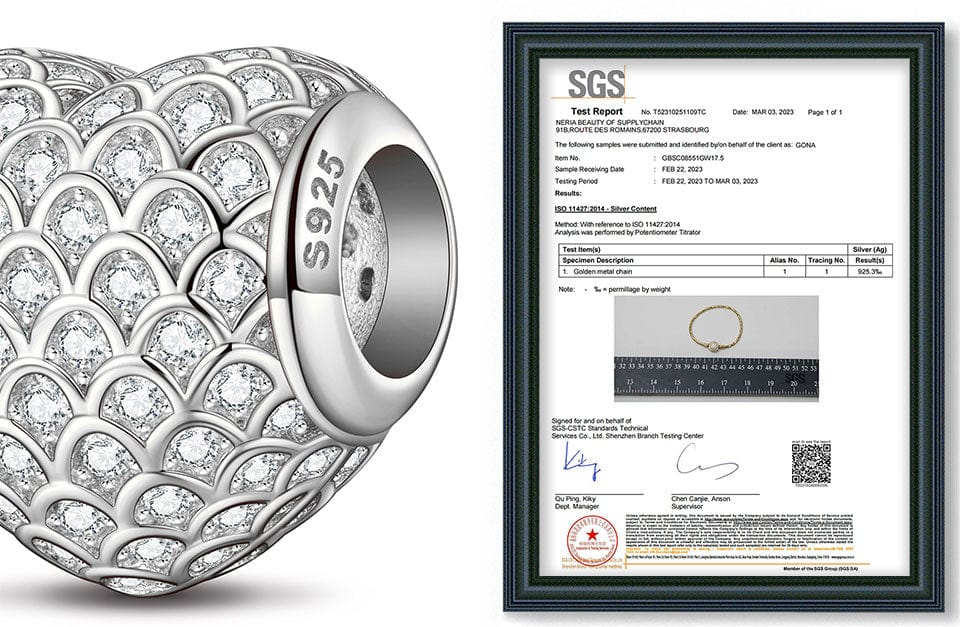 which refers to 925 sterling silver with a silver content of ≥92.5%.